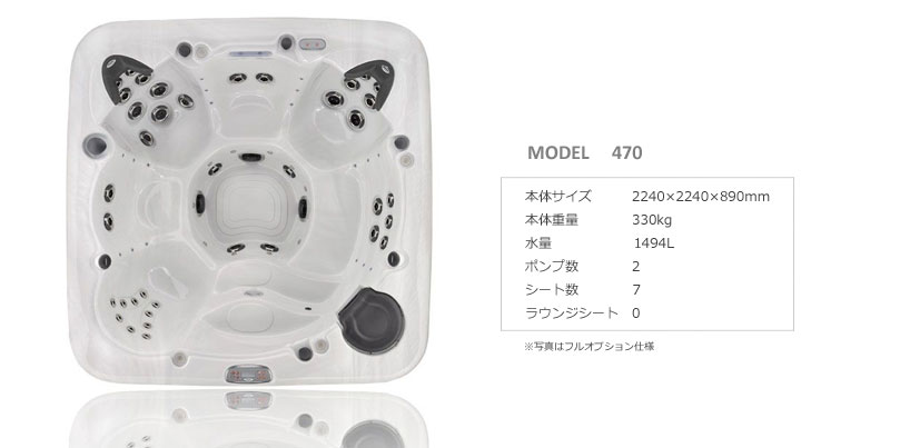 このタイプのジャグジーはご家庭のお風呂の約7倍の水量が必要なので毎日お湯を入れ替えると多額のコストがかかってしまいます。